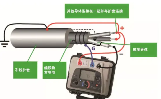 测量线芯和其他导体之间的绝缘: