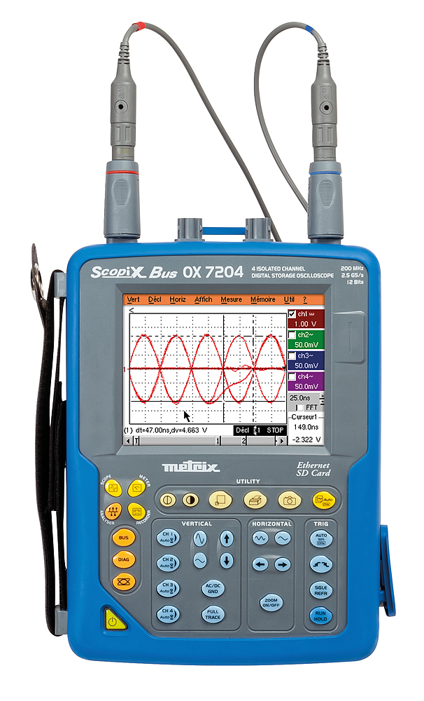 仪器操作简单,通过33个按键,可直接访问所有常用的功能。OX7204-BUS特别适合于现场使用,配有最新专利“即插即用”探头等配件,每个测量通道都相互隔离和对地隔离,通过内置WEB服务器和以太网可进行远程控制,集多种仪器功能于一身,包括4通道TRMS万用表。