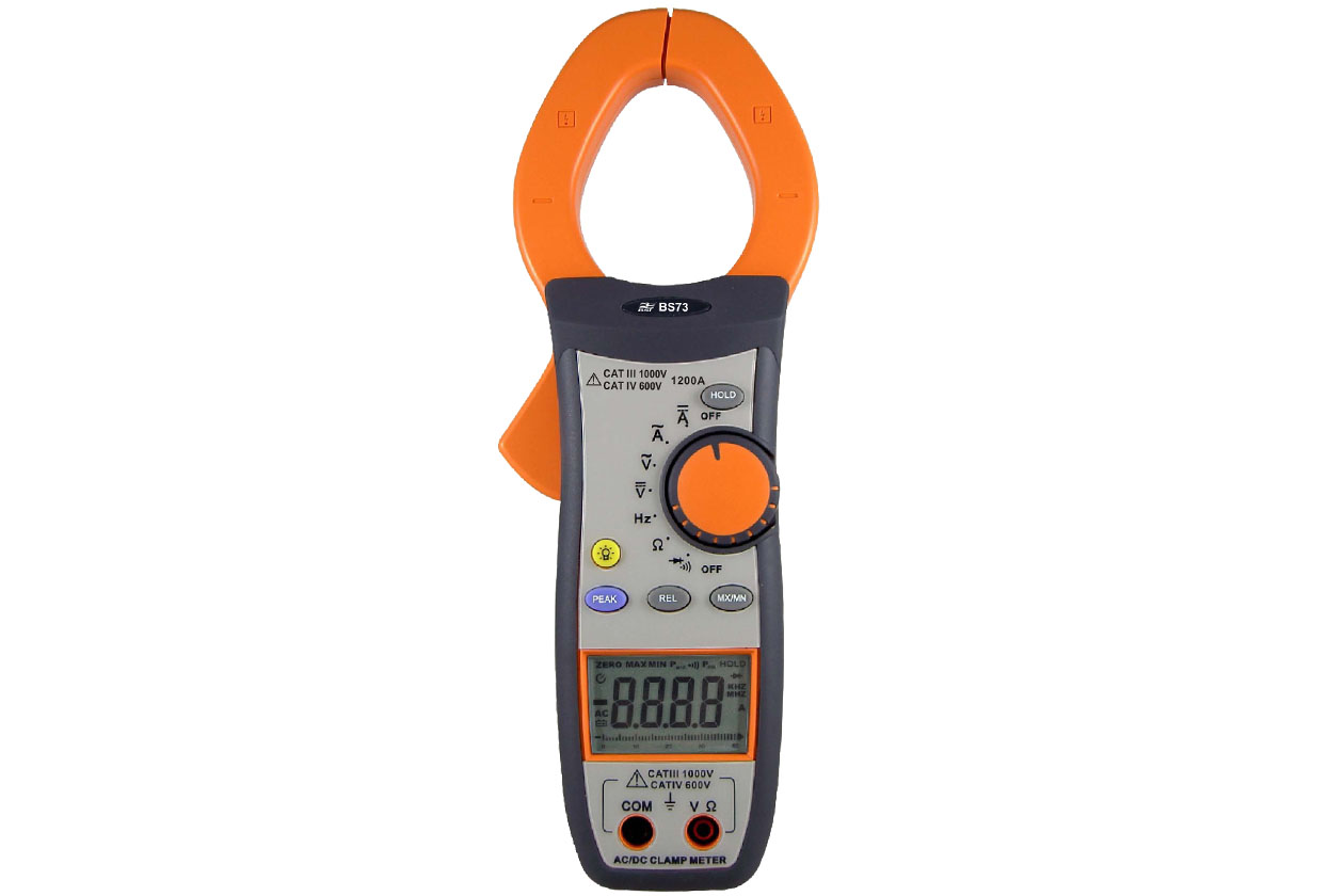 BST- BS73钳形表可测量高达1200A的AC / DC电流,具有AC / DC电压、电阻、通断、二极管和频率测试功能。