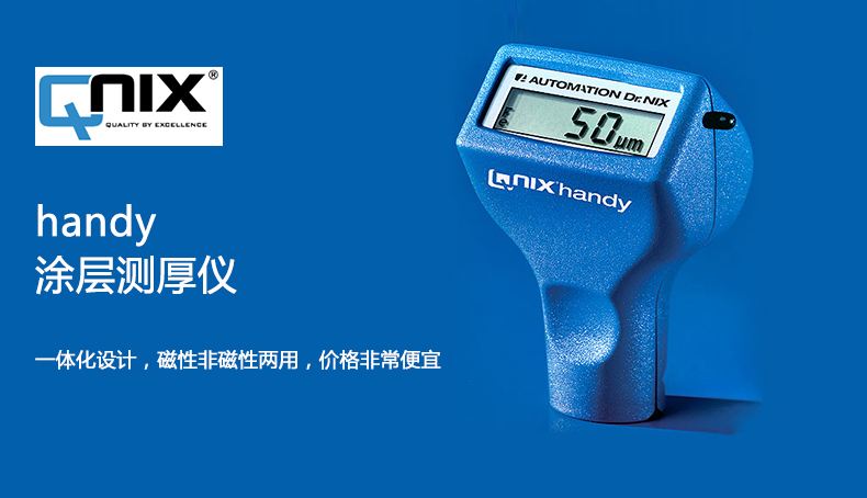 一体化设计,磁性非磁性两用,价格非常便宜。handy表面无任何按键,操作十分简单,显示精度5um,测量范围20-500um,适合涂层较厚,对精度要求不是特别精确的情况下使用。