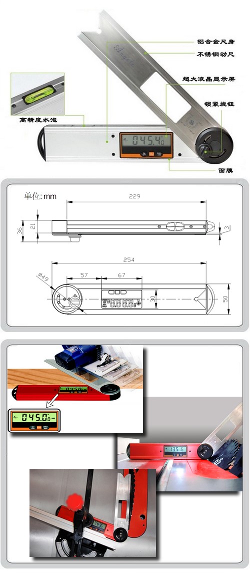 1、家居装潢:如台锯的切割角度调整、橱柜制作的角度测量;